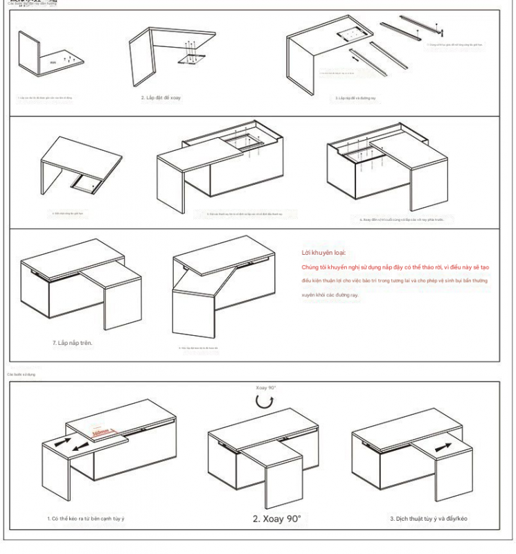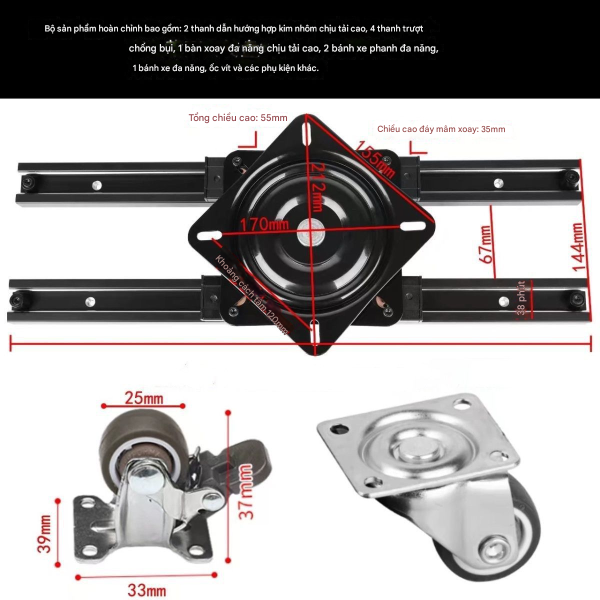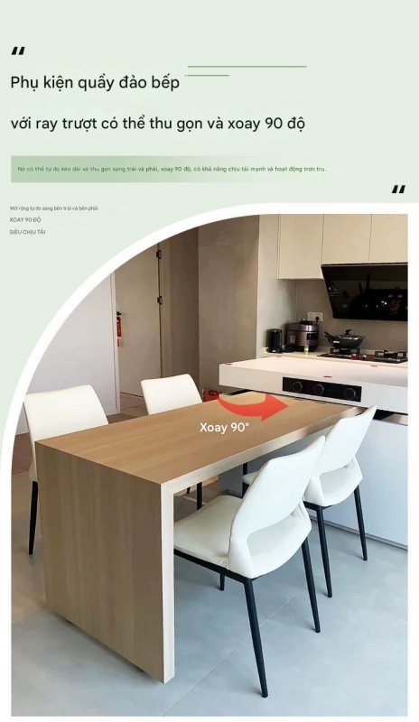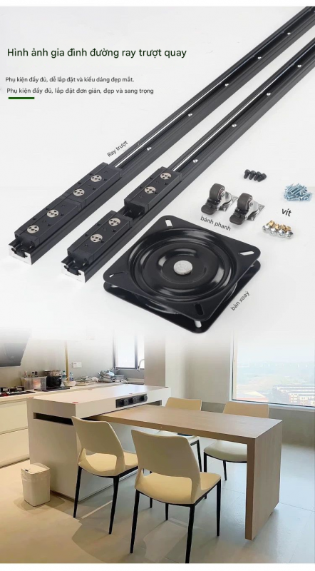 Phụ kiện bàn đảo bếp xoay và trượt, loại chịu tải cao, trượt nhẹ nhàng êm ái, cao cấp.