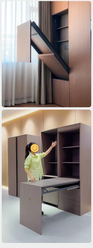 🔹 Thiết kế ray trượt thông minh giúp bàn kéo ra – gập vào nhẹ nhàng, ổn định và chắc chắn. Phù hợp làm bàn ăn gấp, bàn làm việc, bàn bar treo tường hoặc bàn phụ đa năng.