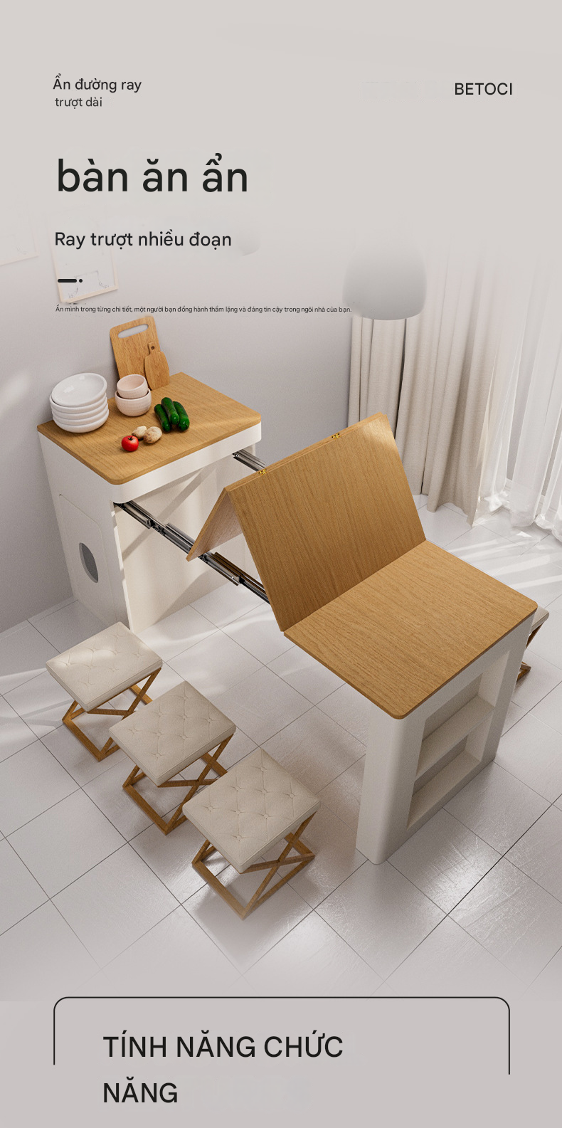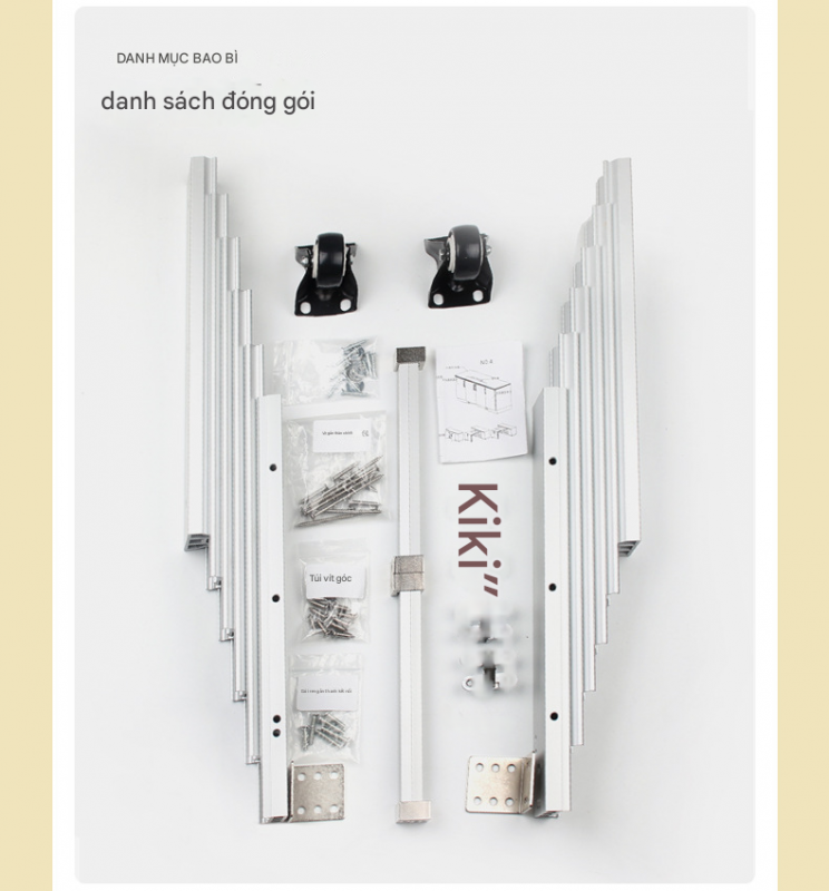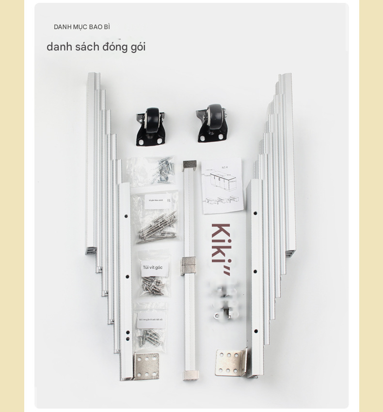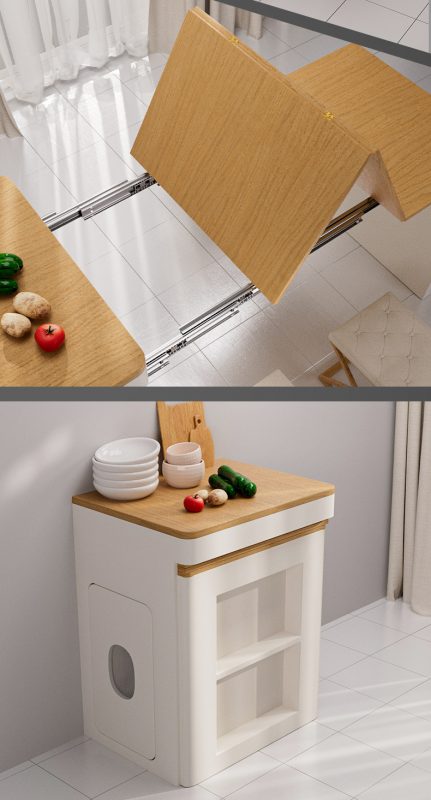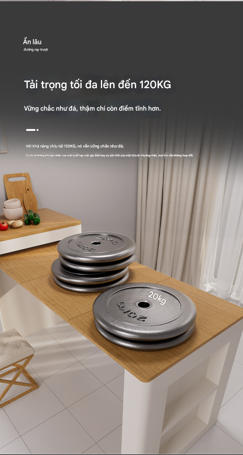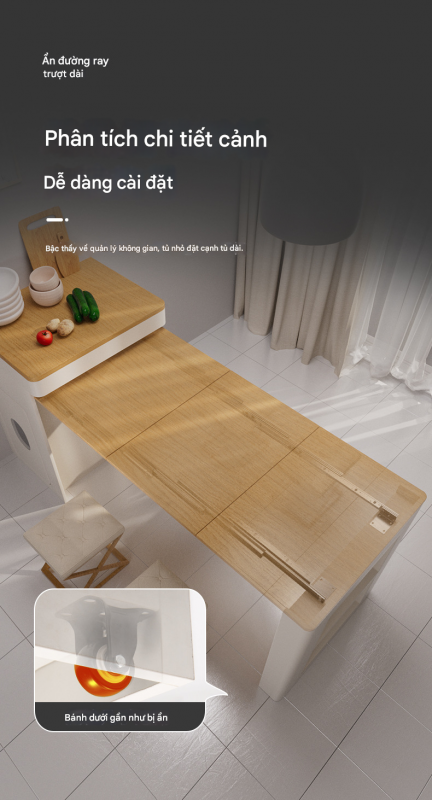 Phụ kiện ray trượt bàn xếp gọn ẩn bên trong tủ bếp thông minh bằng hợp kim nhôm, kết hợp chân bàn có bánh xe.