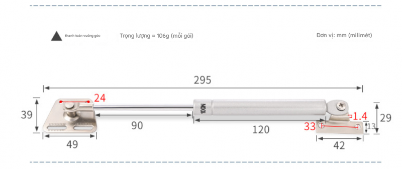 - Ứng dụng: Được sử dụng rộng rãi trong các đồ nội thất (cửa tủ, vali..) ô tô, thiết bị y tế, hộp công cụ..giúp cho việc nâng lên gập xuống khi mở cửa tủ nhẹ nhàng và thuận tiện.